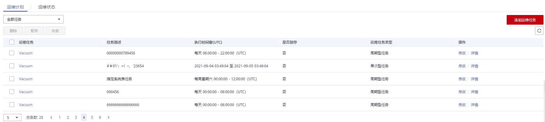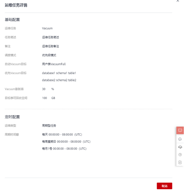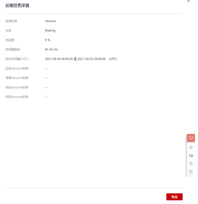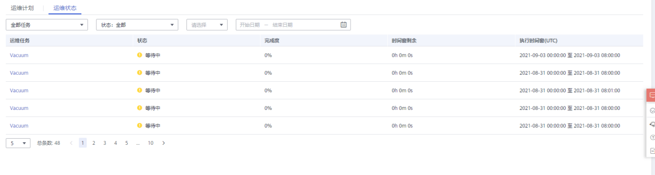 - 运维任务:Vacuum(目前仅支持Vacuum运维任务)。