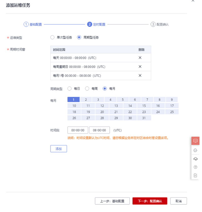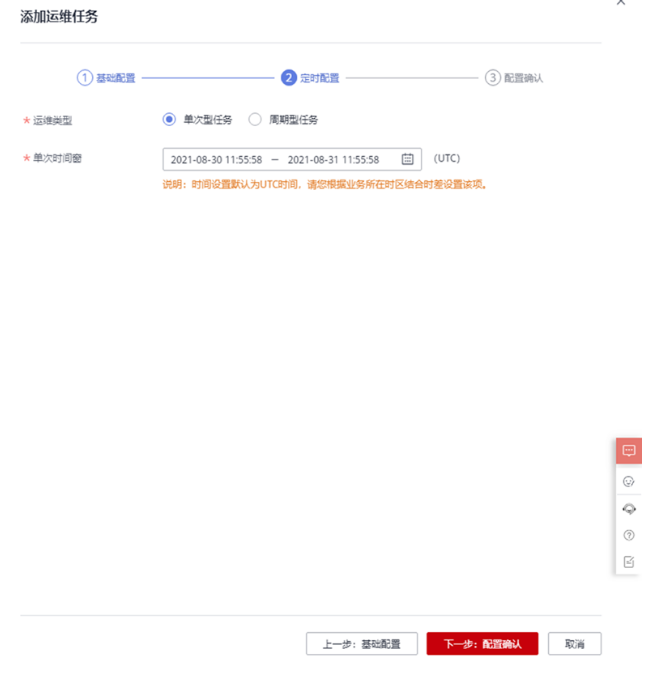 单击“下一步:定时配置”,选择定时运维类型。