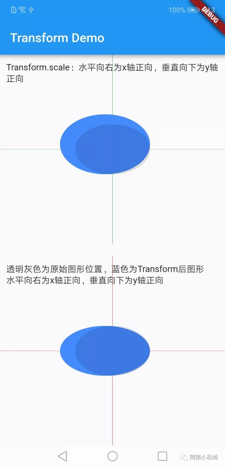 scale 缩放 可以通过 Transform 提供的构造方法或 Matrix4 矩阵变化来实现;