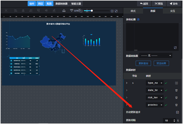 基于华为云数据可视化平台的强大数据集成能力,配合原有的mysql 数据库,实现数据自动更新。