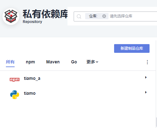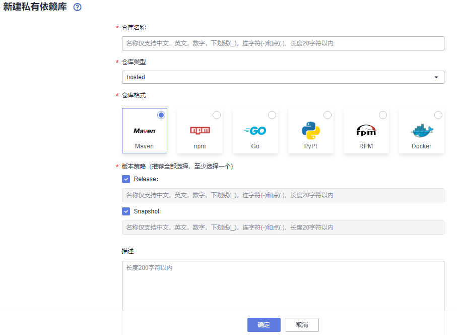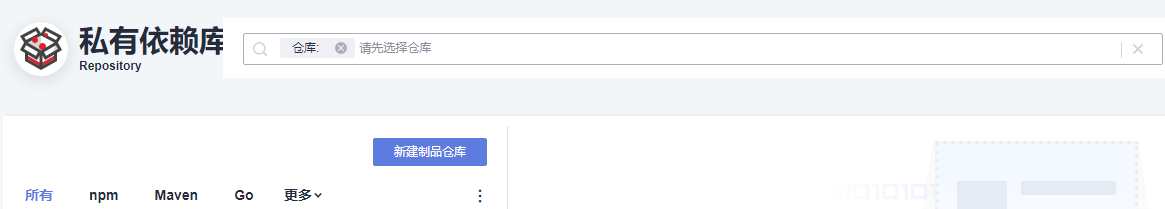 - 进入“私有依赖库”后,点击页面左边的“新建制品仓库”进入“新建私有依赖库”配置仓库基本信息。