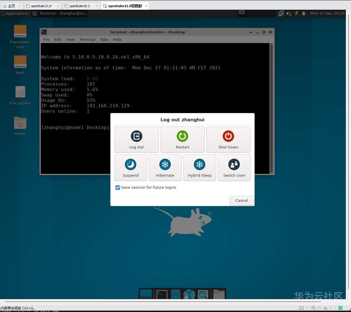 张小白openEuler 21.09桌面系统Xfce安装手记