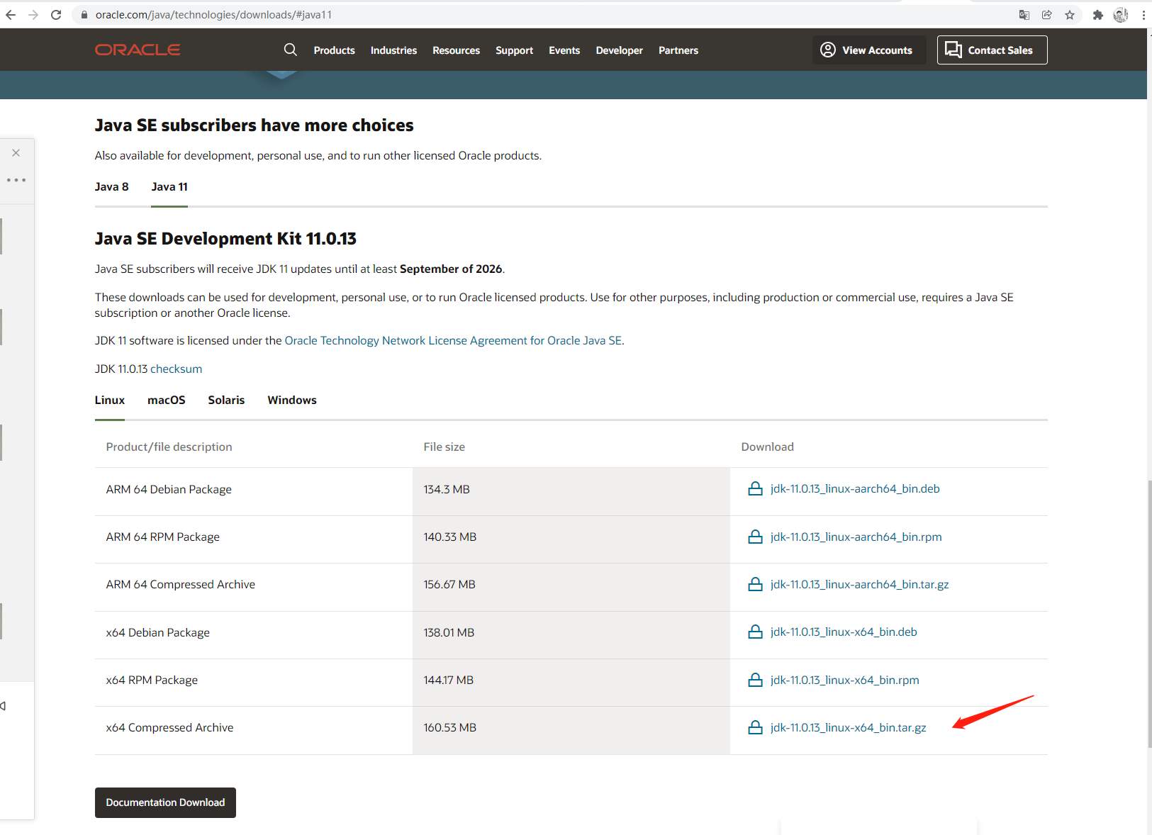 下载 jdk-11.0.13_linux-x64_bin.tar.gz