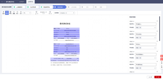 编辑好自定义的字段类型后,我们重新返回框选识别区页面,给每个模板的每一个识别区选择对应的自定义字段类型,选择字段类型后,对应的后处理功能即会自动加入图片的推理过程中。