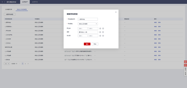 在通过前述测试确认已经准确的把行或段信息提取出来之后,在项目的自定义字段类型页面,根据每个字段的真实场景,我们可以使用自定义字段类型的自定义正则提取功能,编写相应的正则规则进一步精细化提取关键字段信息。
