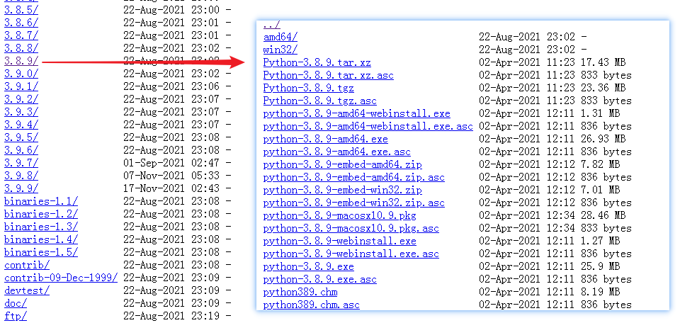 上图包含各个平台可用的 Python 软件,在下载之前,你要先确定电脑的位数,现在的电脑一般是 64 位的,所以选择 python-3.8.9-amd64.exe 下载即可,你可能会问,其余的都是啥?重要吗,很重要,用学吗?算了吧,你学了不太容易记住。