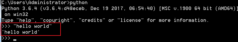 在接下来输入 "hello world",效果如下,好了,到现在为止,你的 Python 环境已经配置的差不多了。