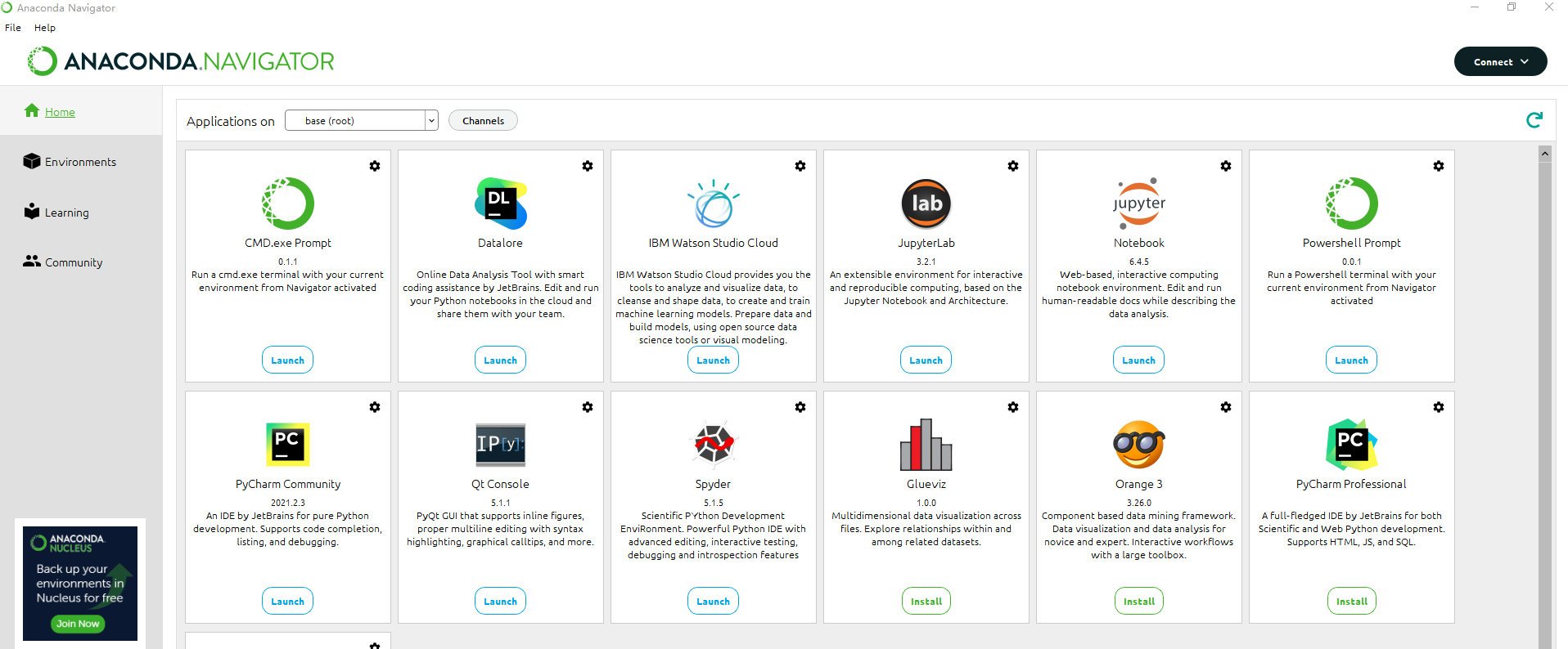 后续学习过程中,主要围绕 jupyter 操作,所以点击该图标下面的 Launch 尝试首次运行,该程序将打开你的默认浏览器,并打开你的文档 目录,该目录可修改