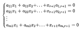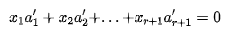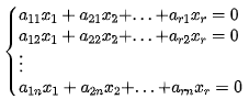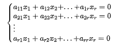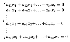 至少∃一组r-1个方程,对于其他的n-r+1个方程,都可以用这组方程的加或减来表示。因而有效方程数少于未知数,方程组必有非0解,即