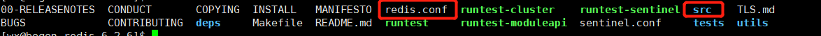 编译完成之后,可以看到解压文件中会有出现的src、redis.conf等文件