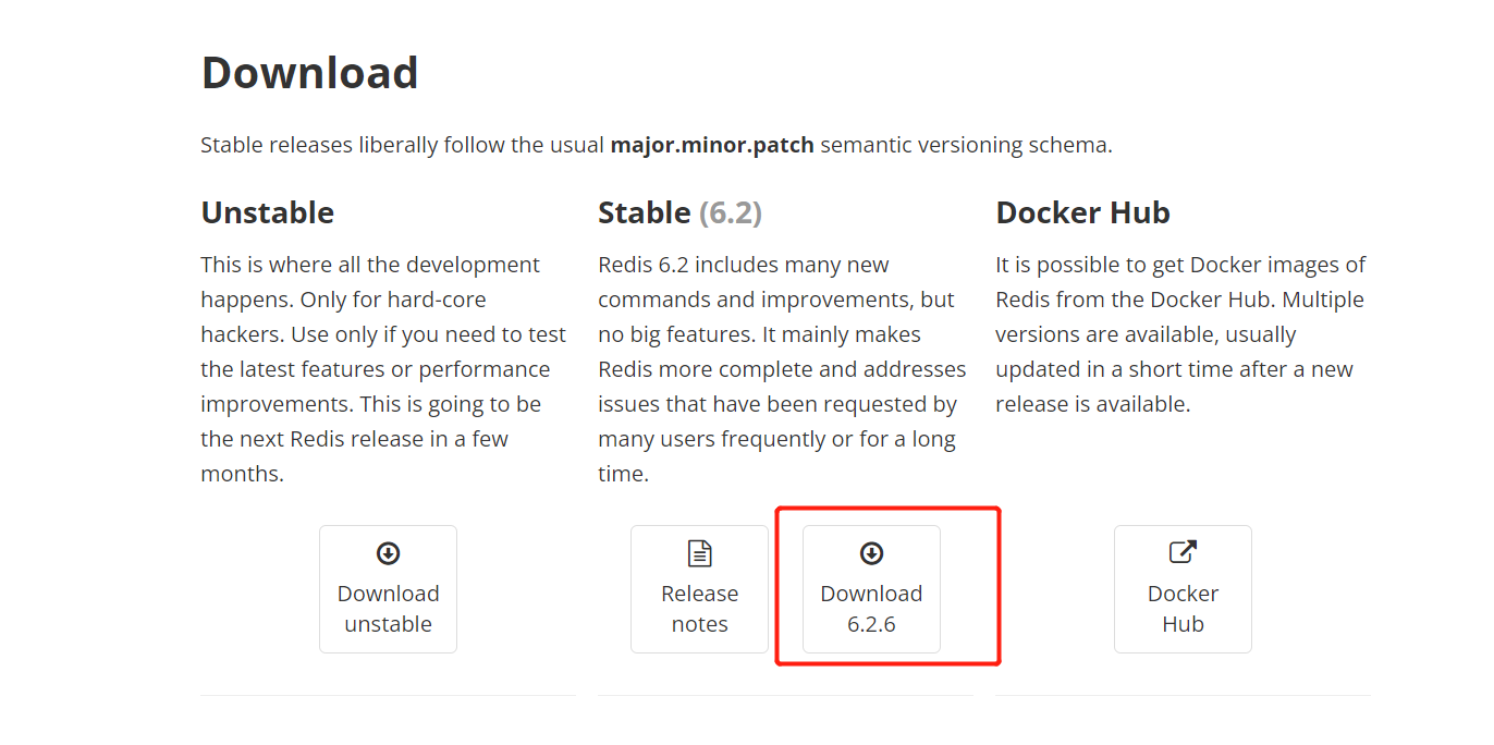 访问官网https://redis.io/download 到官网进行下载。这里是最新版本下载,要搞就搞最新的嘛。。。如果下载历史版本可以在里面找找