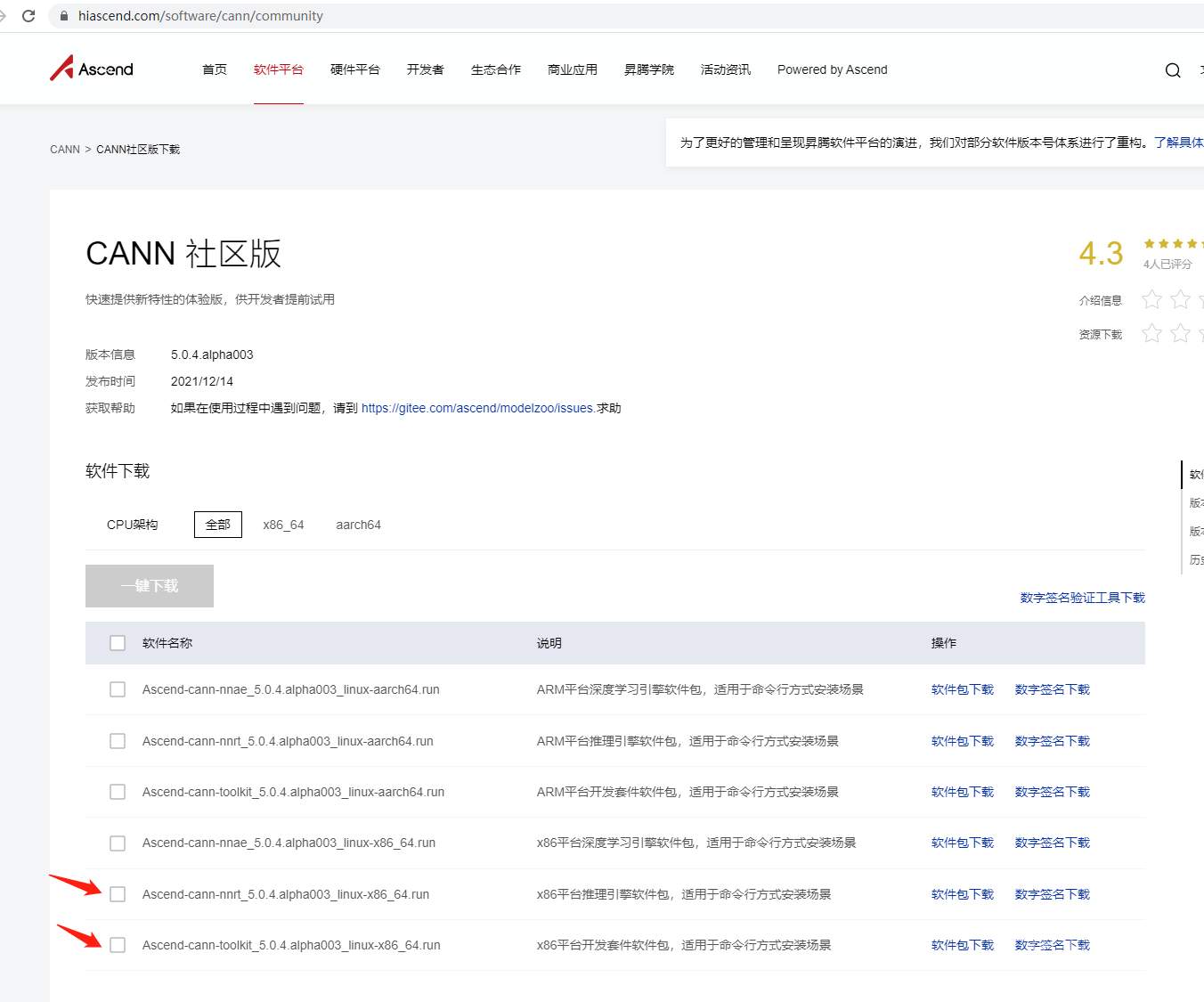 到hiascend.com下载CANN最新版软件包: