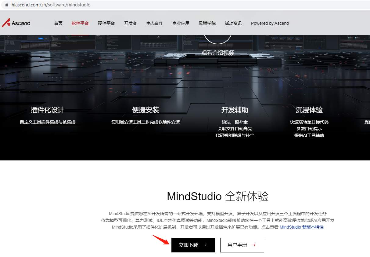 打开 https://www.hiascend.com/zh/software/mindstudio