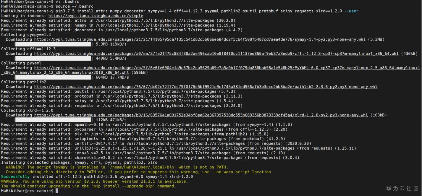 pip3.7.5 install attrs numpy decorator sympy==1.4 cffi==1.12.3 pyyaml pathlib2 psutil protobuf scipy requests xlrd==1.2.0 --user