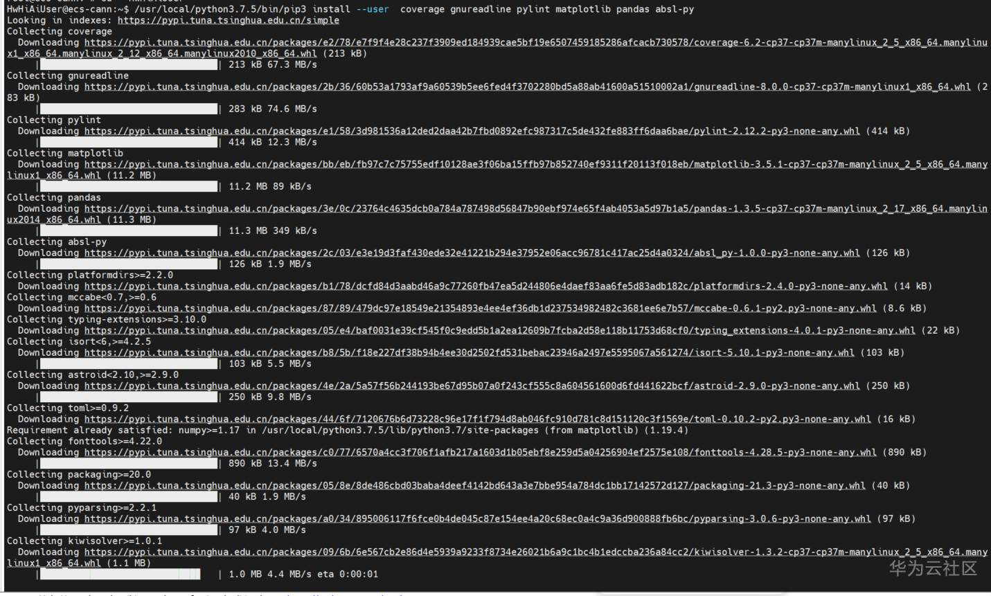 /usr/local/python3.7.5/bin/pip3 install --user coverage gnureadline pylint matplotlib pandas absl-py