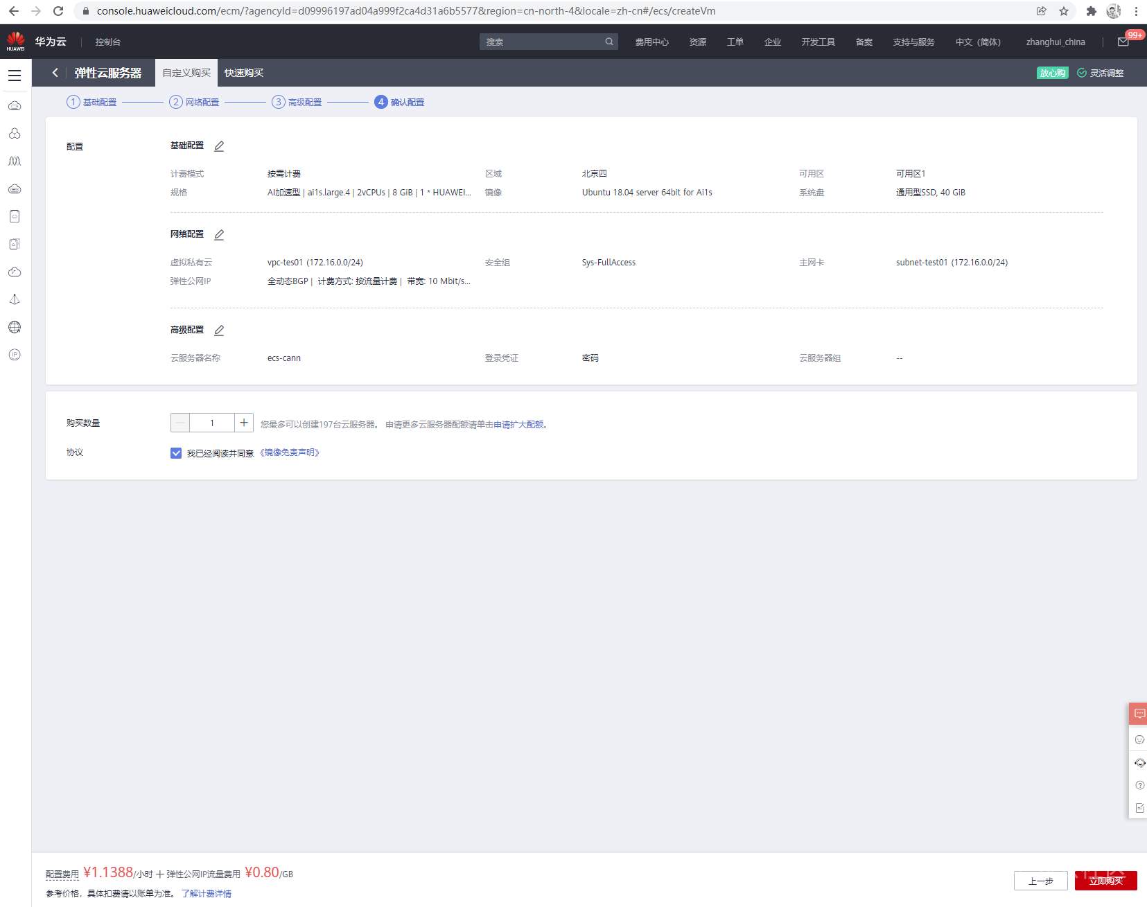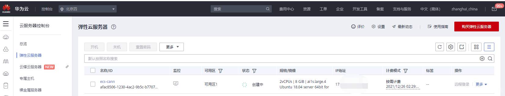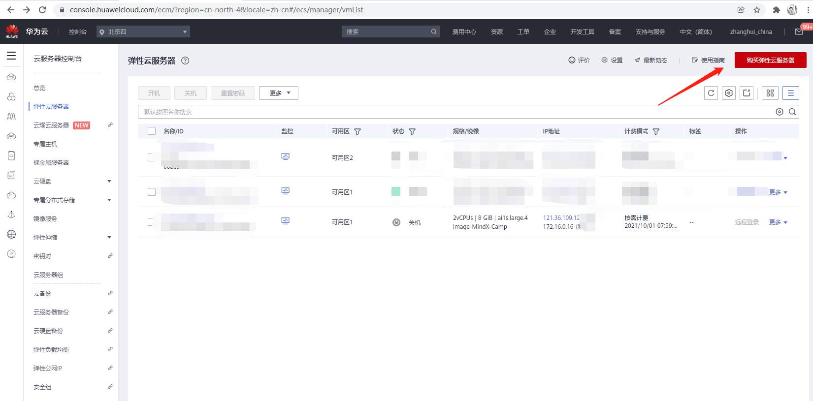 进入控制台->弹性云服务器(北京四)