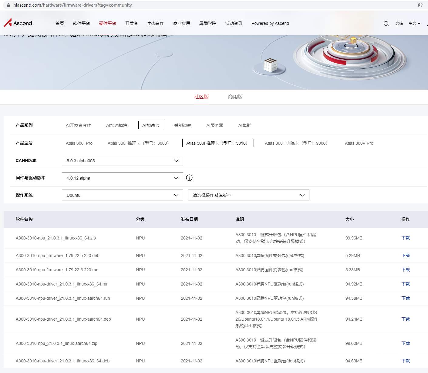 打开 https://ascend.huawei.cn/#/software/cann/community