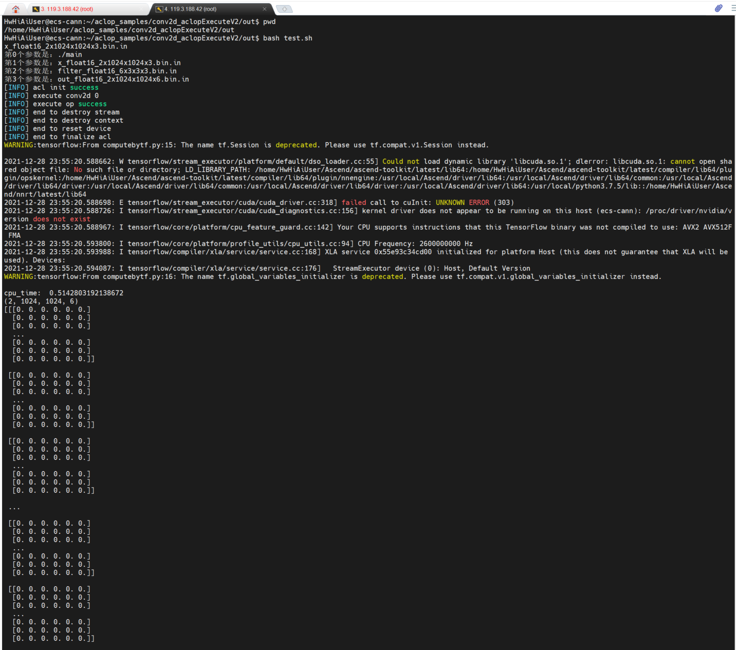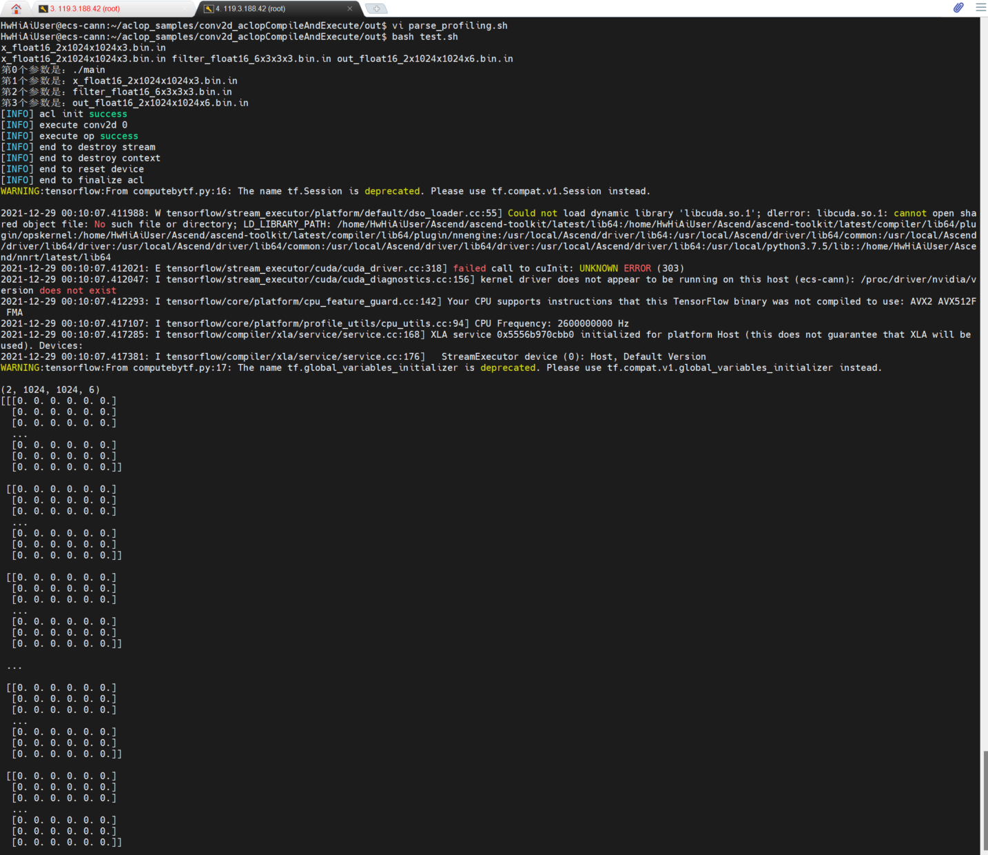 3.执行Tensorflow 1.15同样的conv算子代码computebytf.py,这个代码中会比较两个结果的异同。如果结果相同,那么就会显示全0(故而前面算出一大堆非0数据就说明算子计算的结果不一致)
