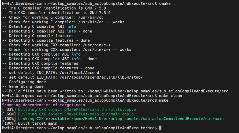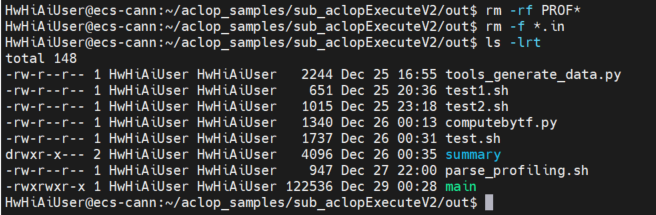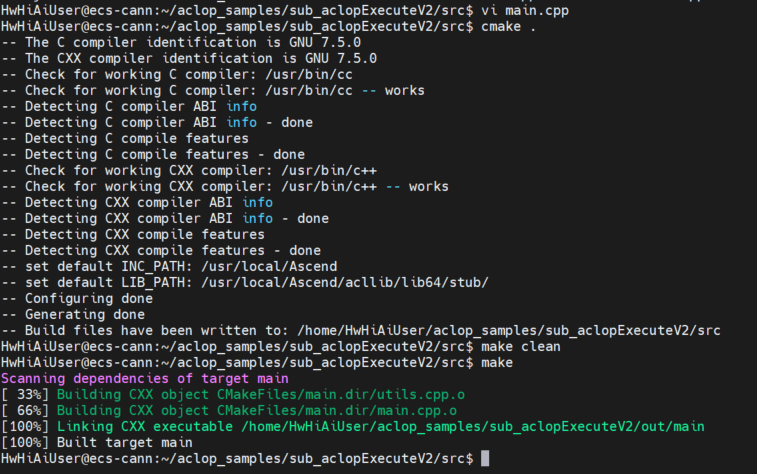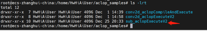 再切换到 /home/HwHiAiUser/aclop_samples/sub_aclopExecuteV2/ 目录