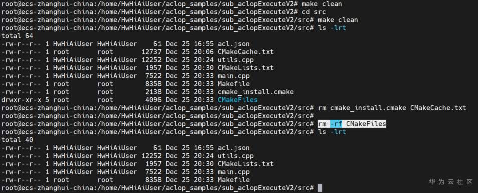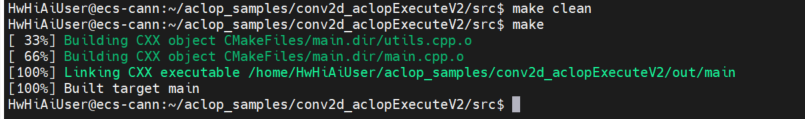 切换到 /home/HwHiAiUser/aclop_samples/sub_aclopExecuteV2/src 目录