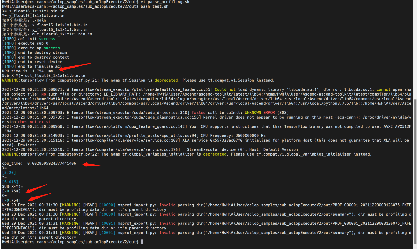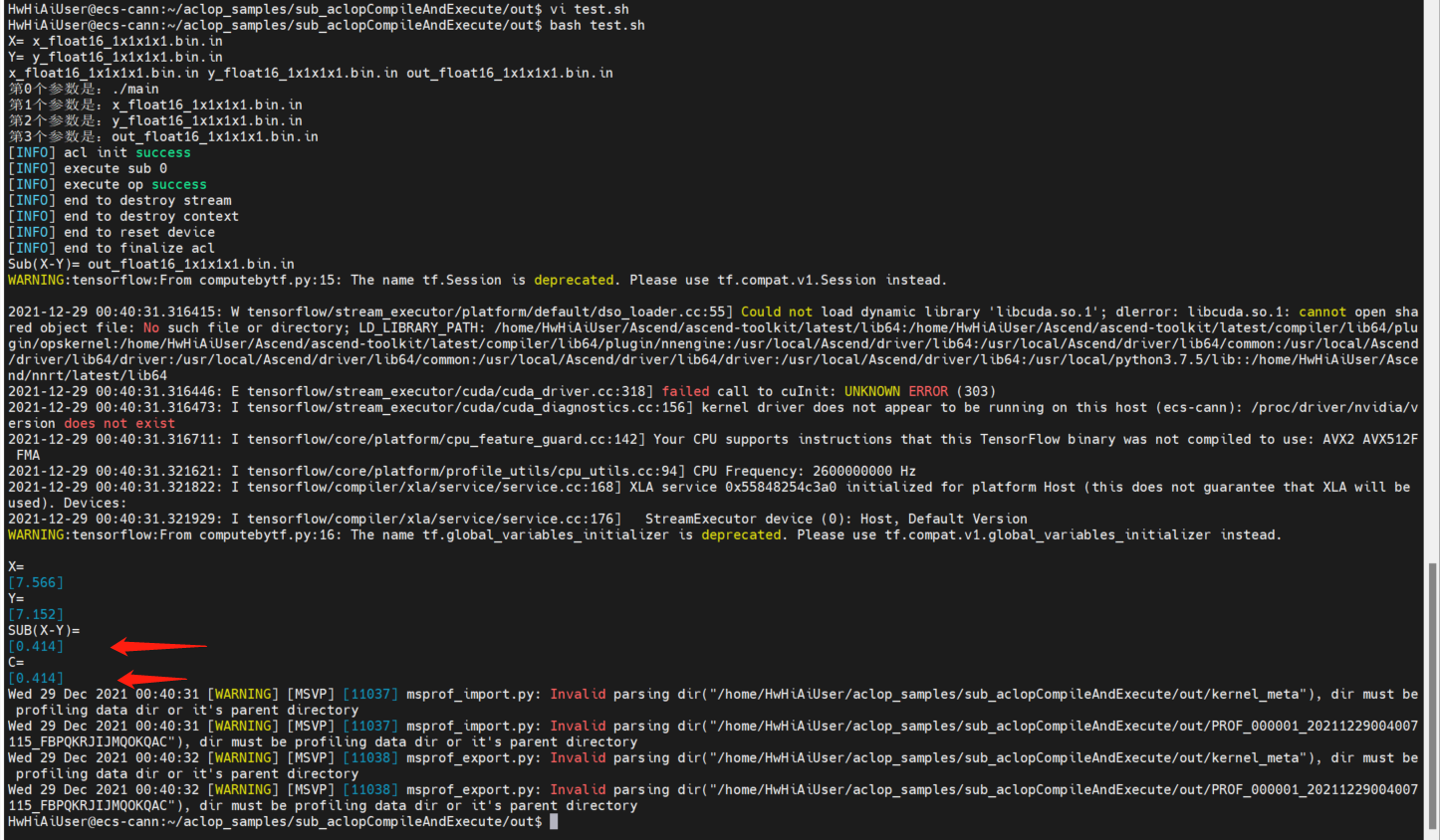 四、跑通作业 aclopCompileAndExecute (sub算子)