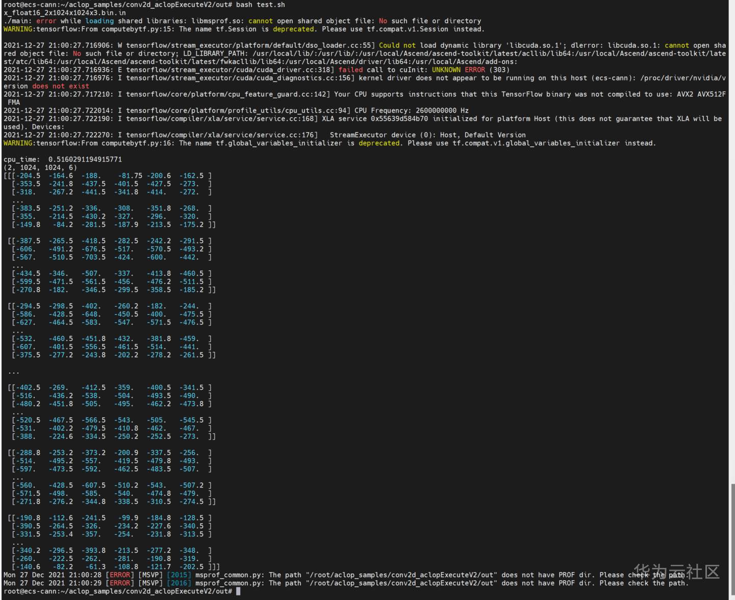 这里首先报了个找不到libmsprof.so的错,这个应该是profiling脚本对应的路径不对,待会儿再说。