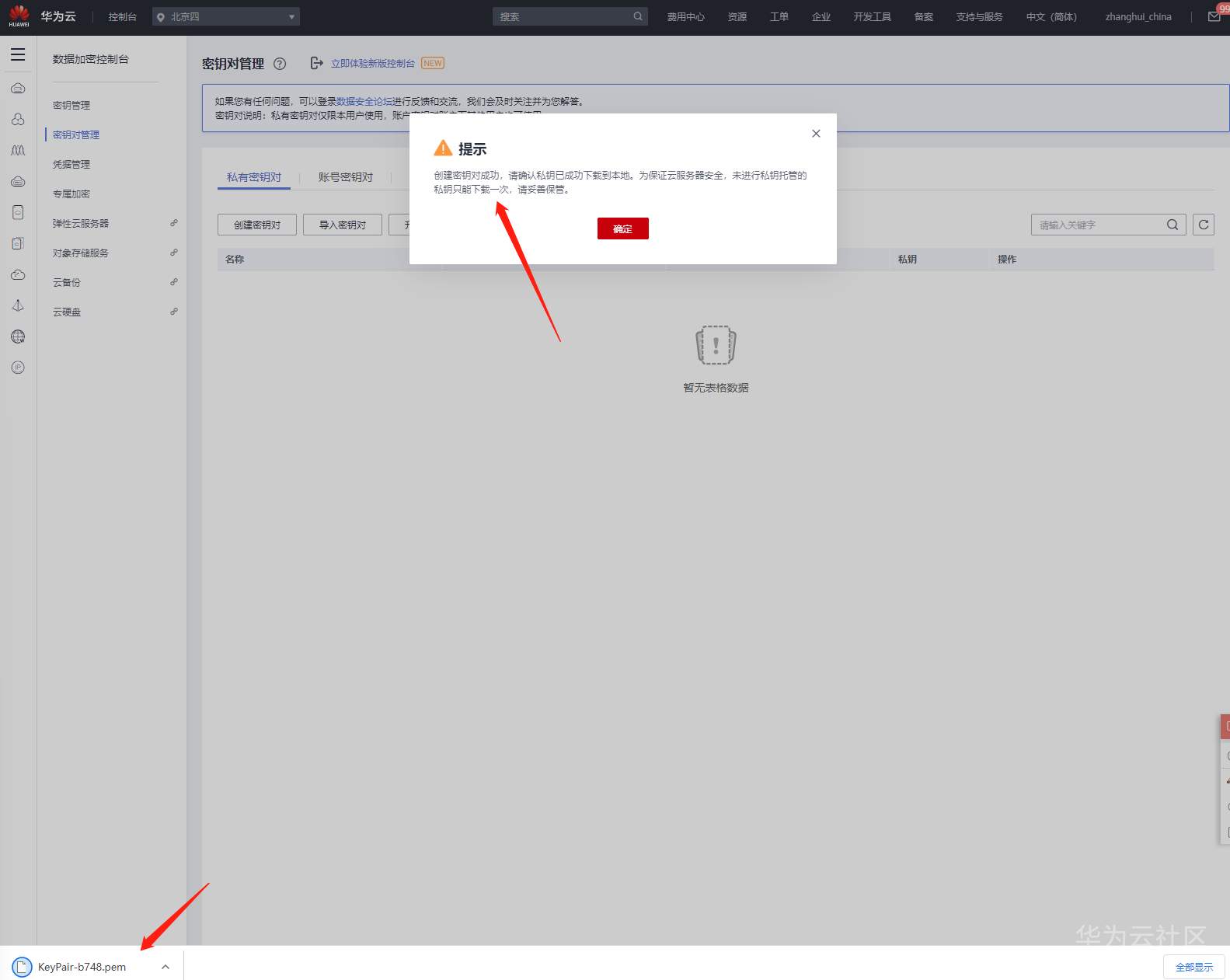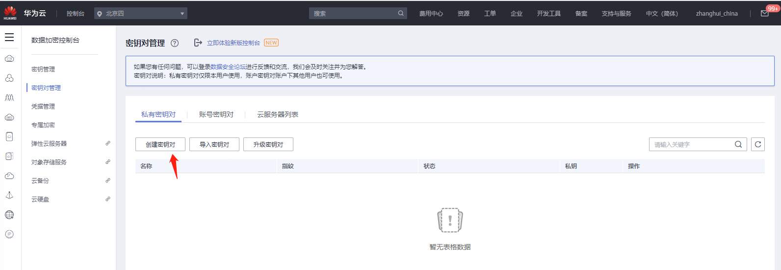 点击创建密钥对