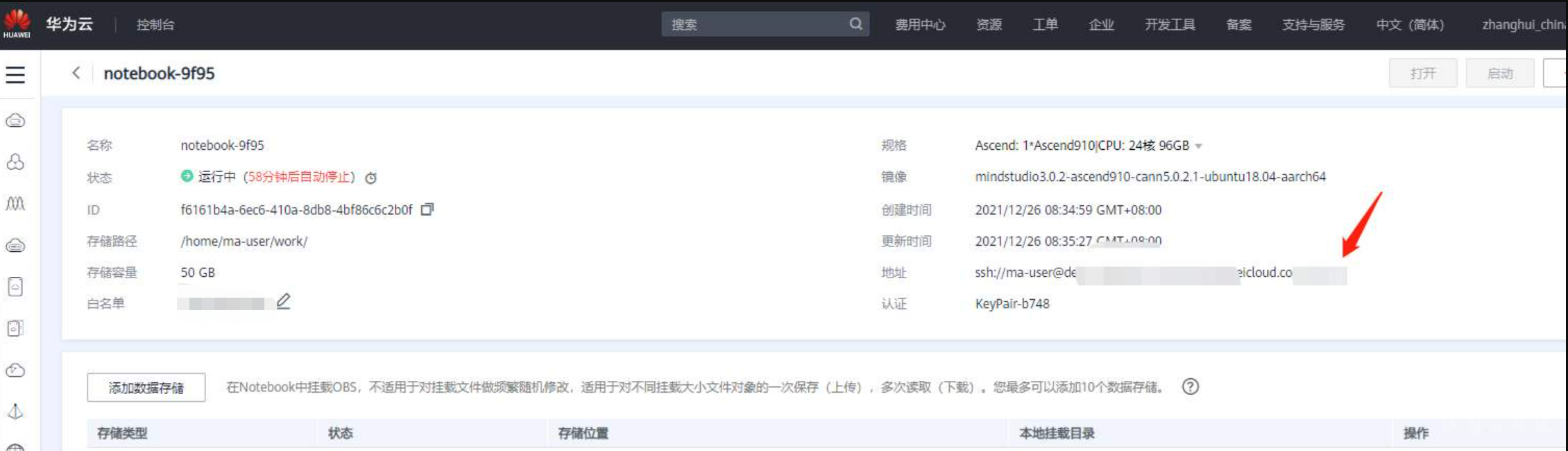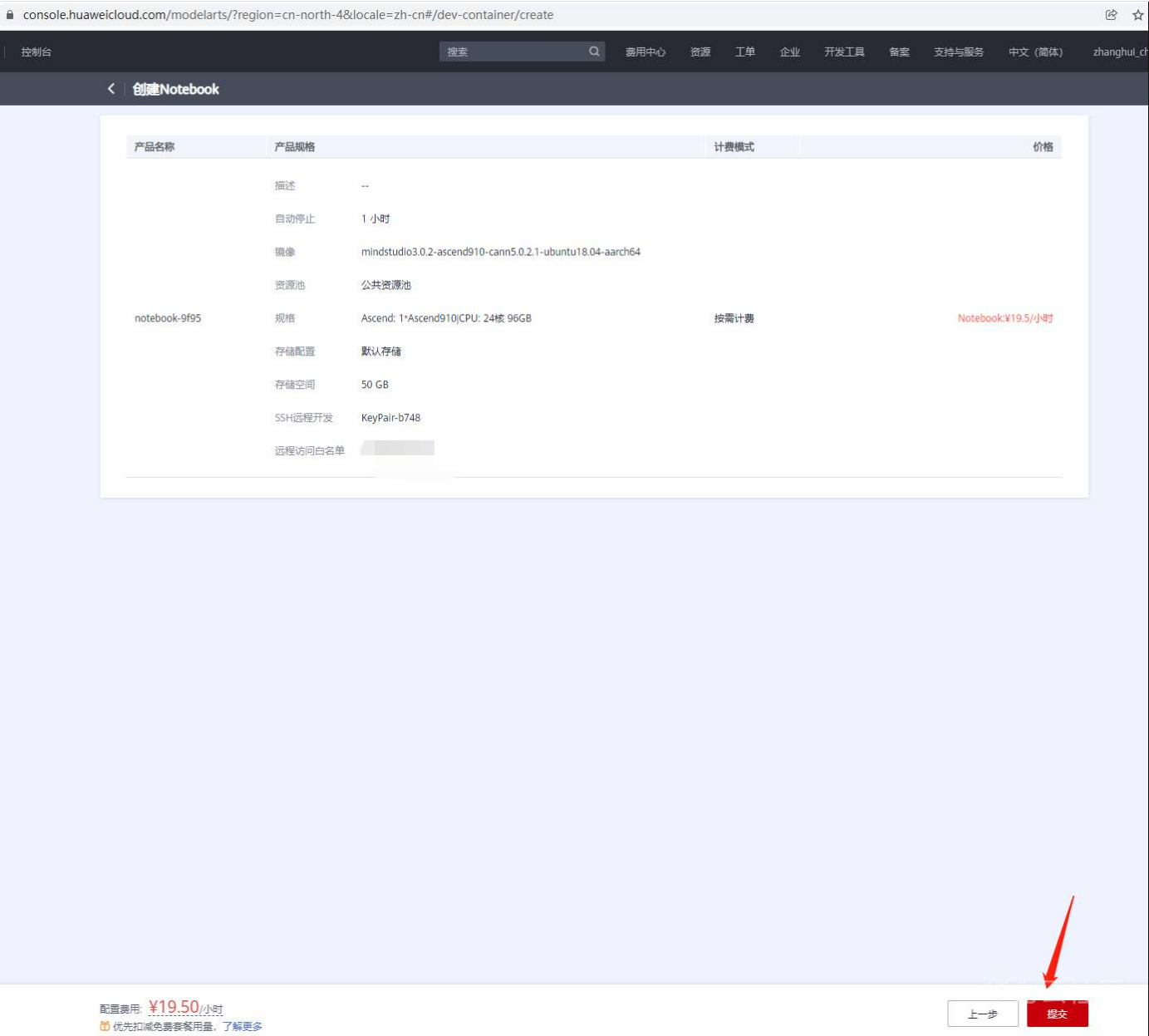 回到浏览器的创建NodeBook页面,点击 密钥对右边的刷新按钮, 密钥对就可以选择了: