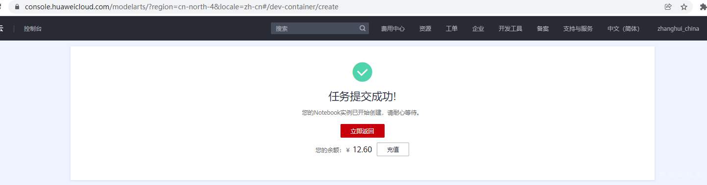 点击提交,提交成功,张小白还剩 12.6元