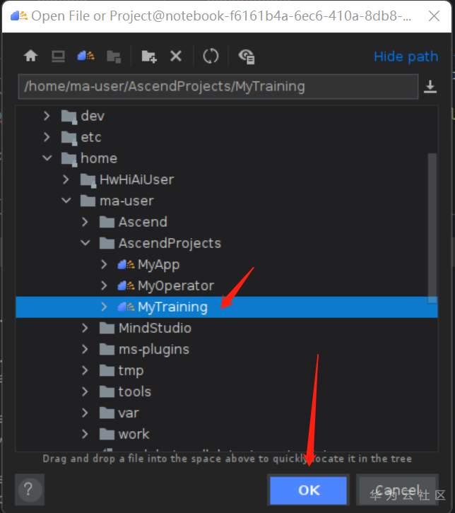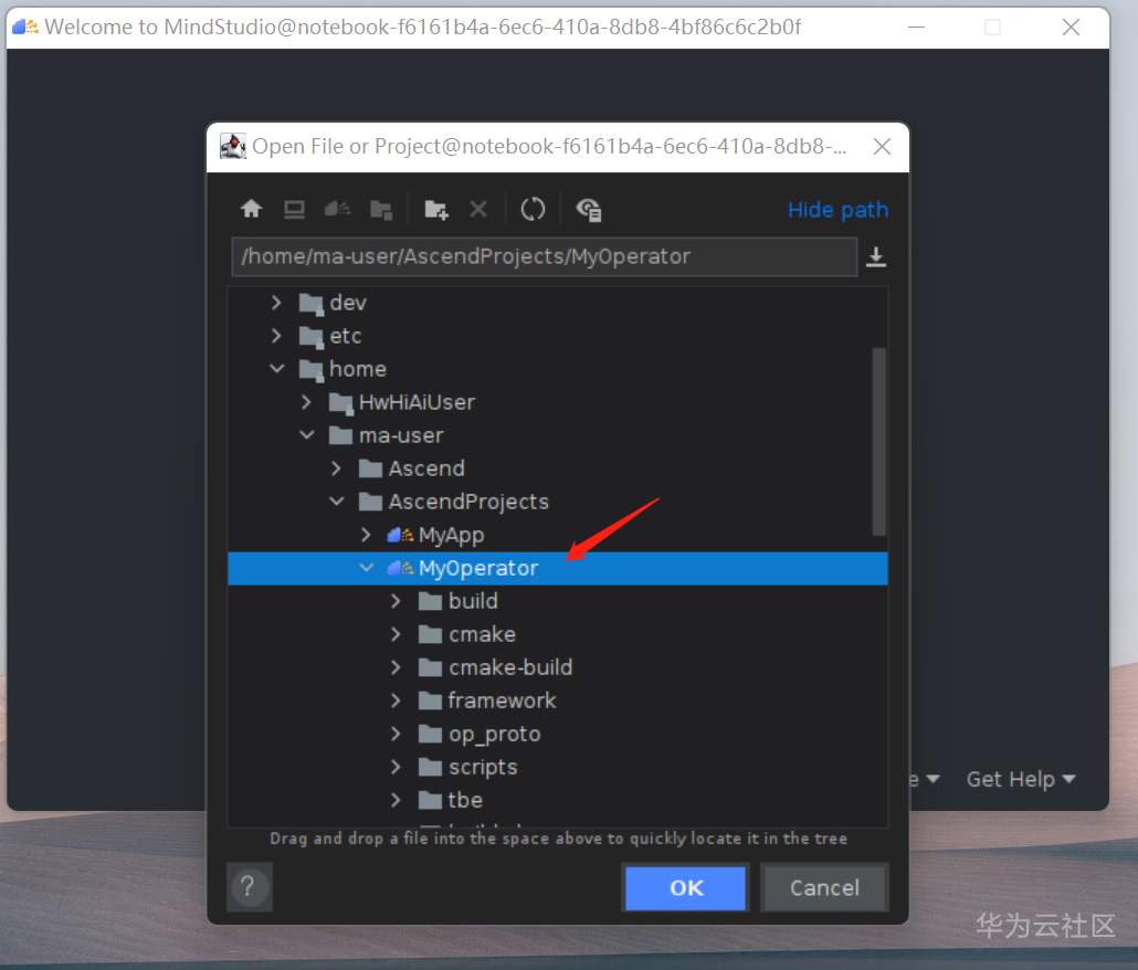 选择 /home/ma-user/AscendProjects/MyOperator 目录