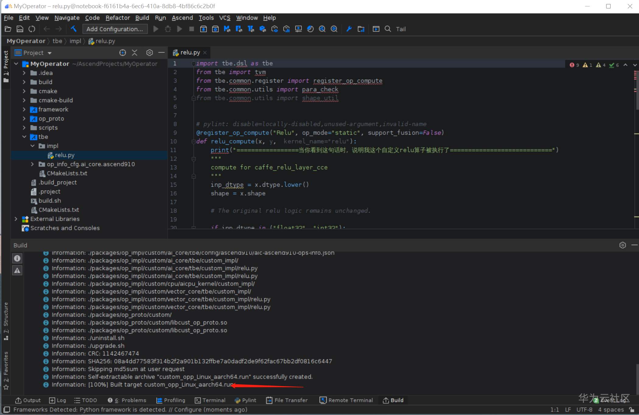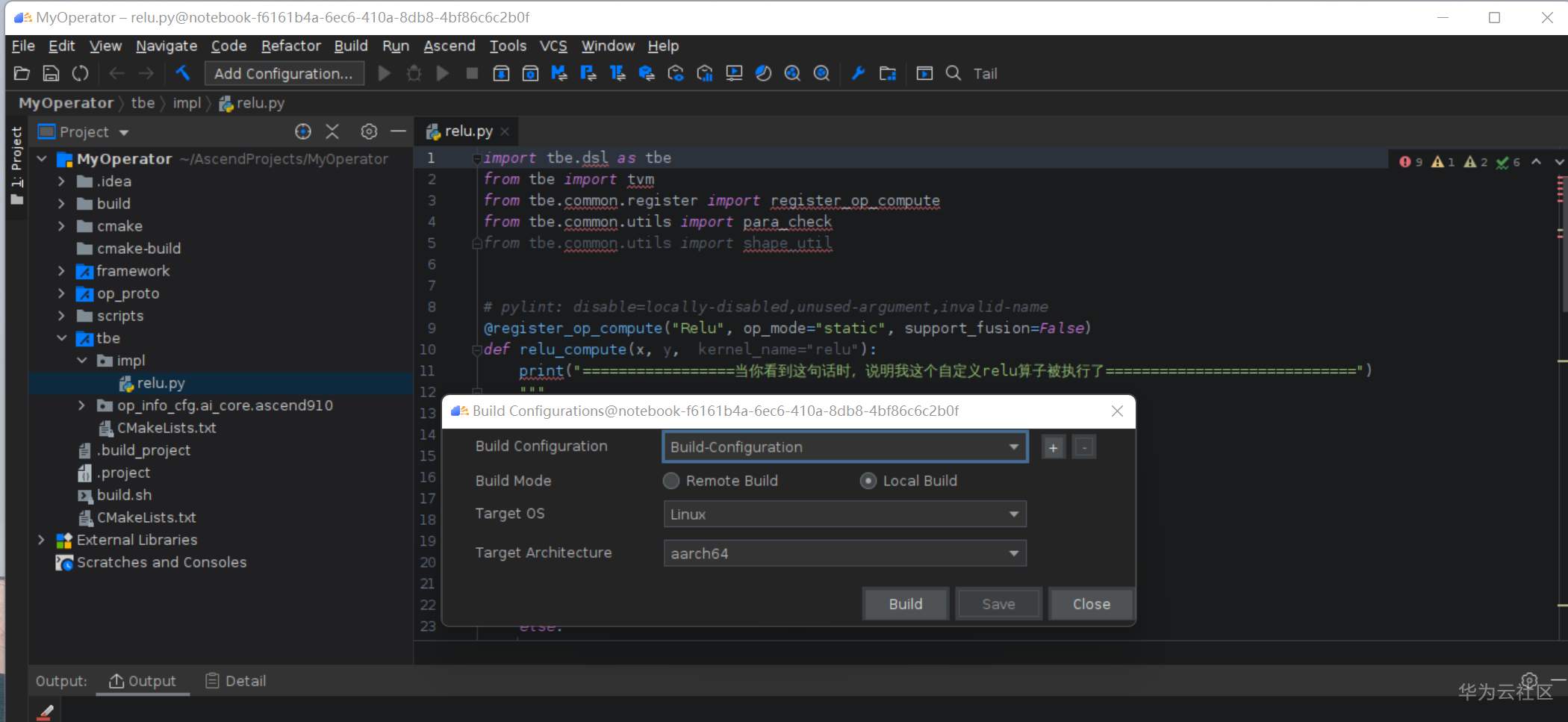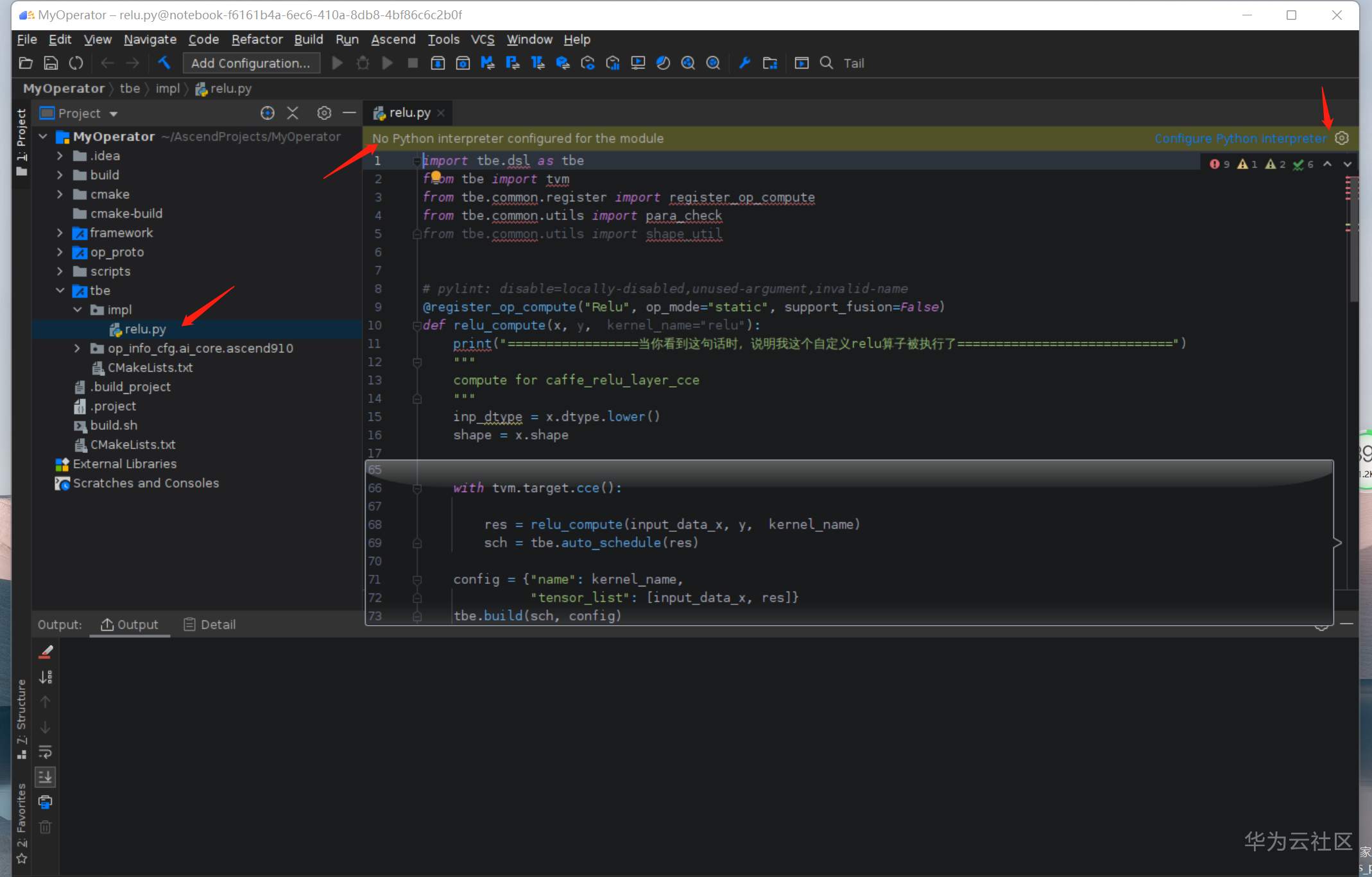 点击左边的Project,打开 tbe/impl/relu.py