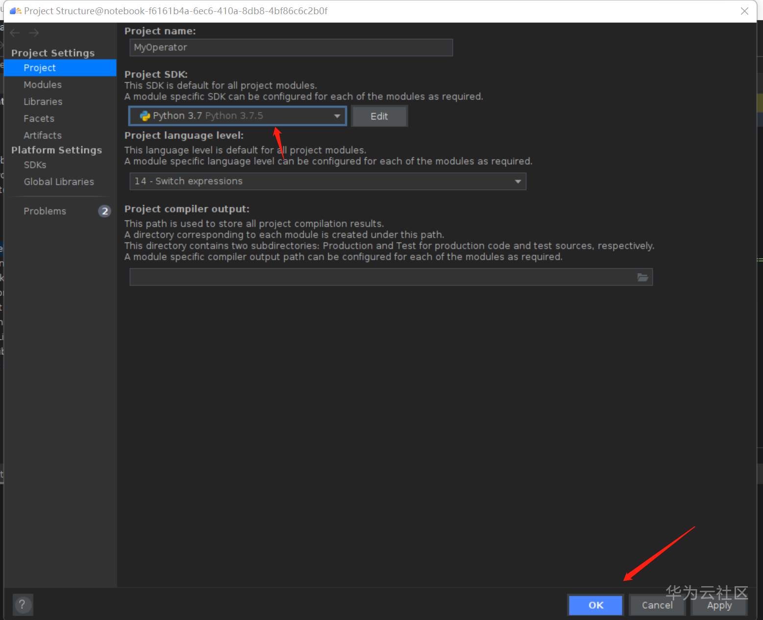 选择Deleted SDKs的 Python 3.7.5(好奇怪的选择),点击OK
