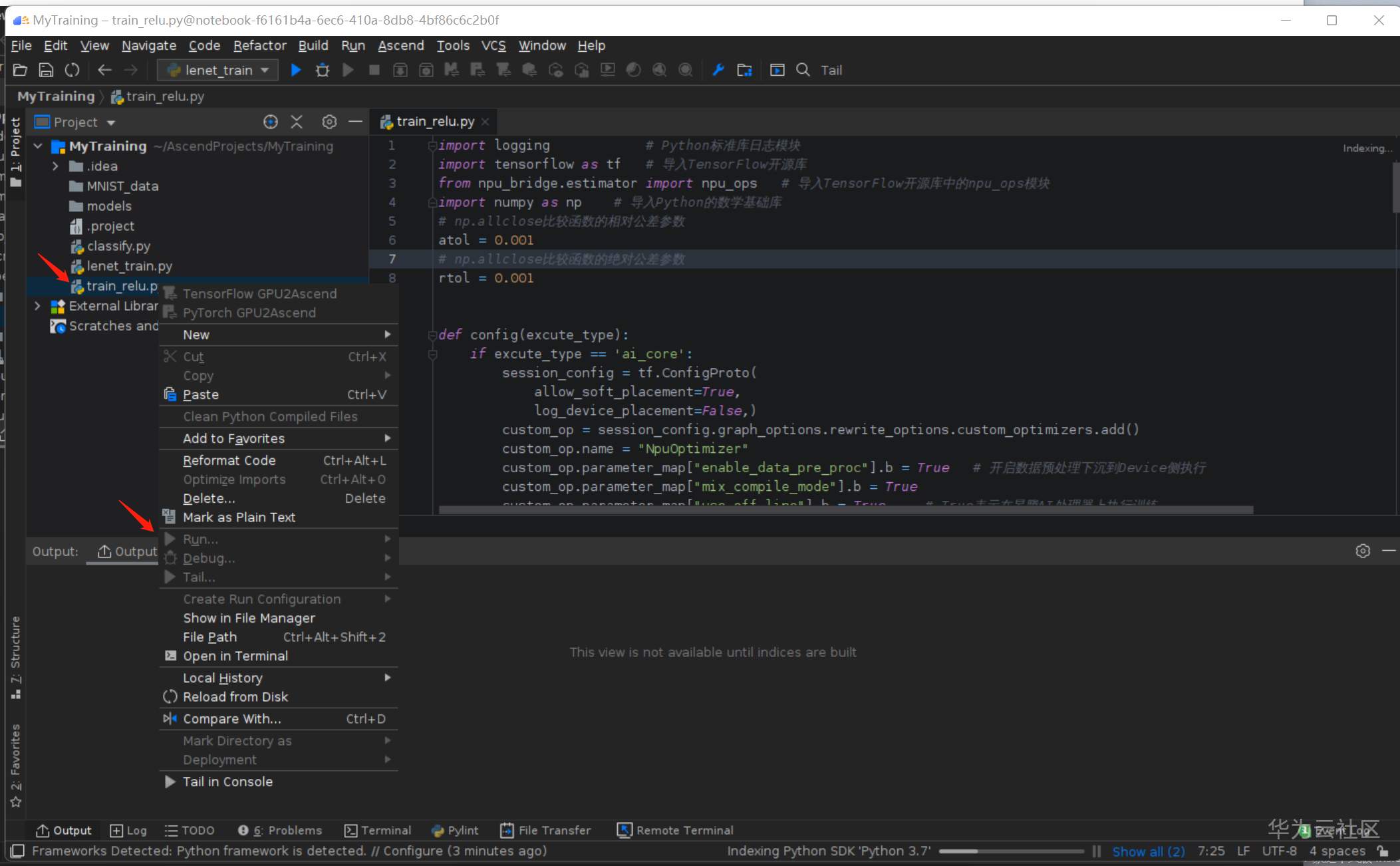 选择自定义算子的代码 tran_relu.py,右键