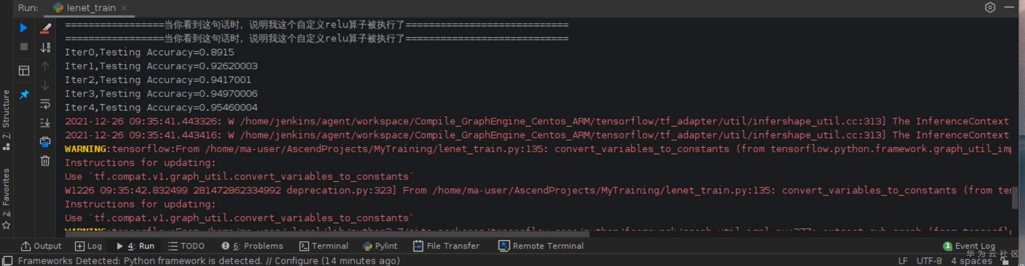 然后又完成了融入该算子的LeNet网络的训练(变为pb模型) MyTraining