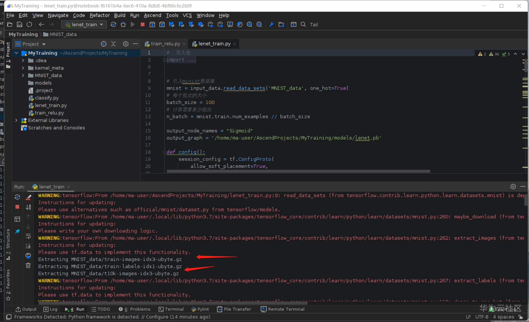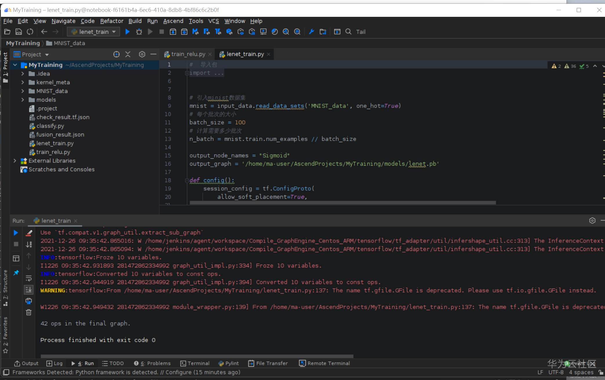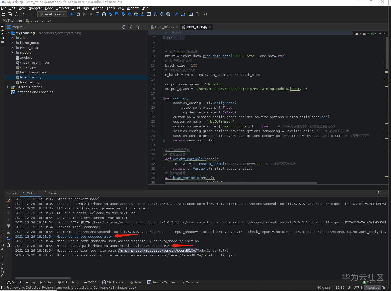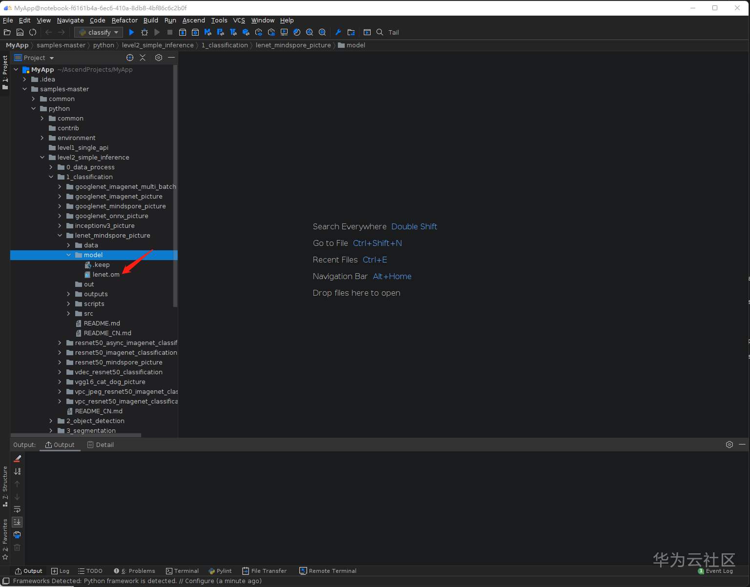弹出的文件夹选择 /home/ma-user/AscendProjects/MyTraing/models/lenet.pb文件,点击OK: