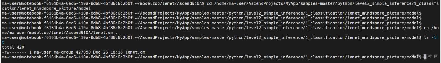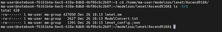 转换好的om放在了 /home/ma-user/modelzoo/lenet/Ascend910A/