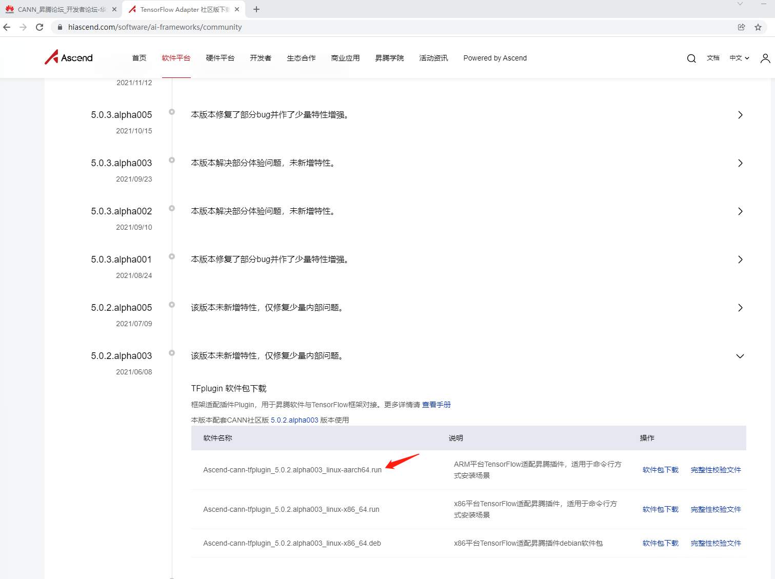 点击aarch64的那个软件包下载, 复选已阅读