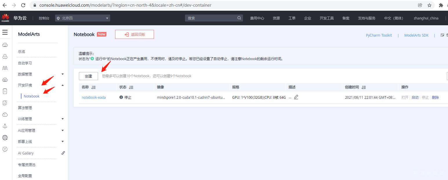登陆ModelArts: