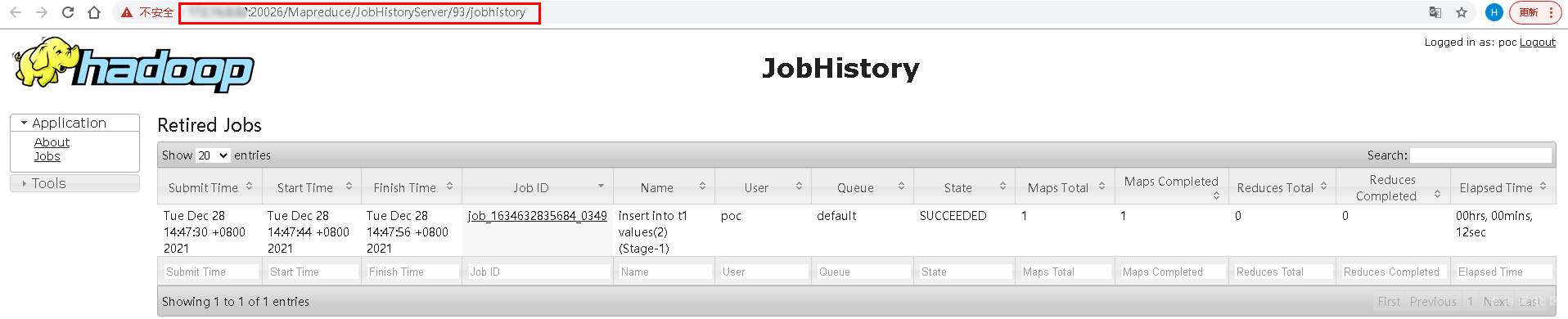 Mapreduce jobhistory实例直连信息: