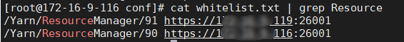 - 获取对应实例对应的直接ip以及端口,登录集群oms节点后台查看whitelist.txt文件,样例路径为: