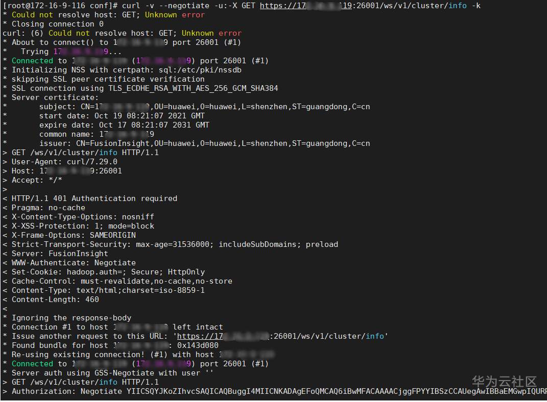 yarn resource manager获取参考命令 curl -v --negotiate -u:-X GET https://xxx.xx.xxx.xx:26001/ws/v1/cluster/info -k