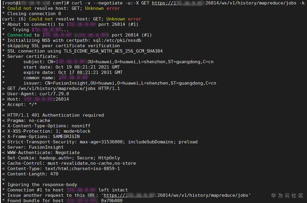 Mapreduce jobhistory 获取参考命令 curl -v --negotiate -u:-X GET https://xxx.xx.xx.xx:26014/ws/v1/history/mapreduce/jobs -k
