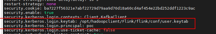 并配置/opt/hadoopclient/Flink/flink/conf/flink-conf.yaml文件中的认证内容跟上述下载信息匹配