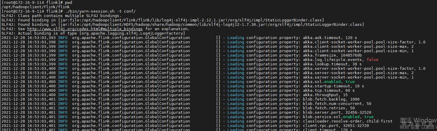 cd /opt/hadoopclient/Flink/flink ./bin/yarn-session.sh -t conf/