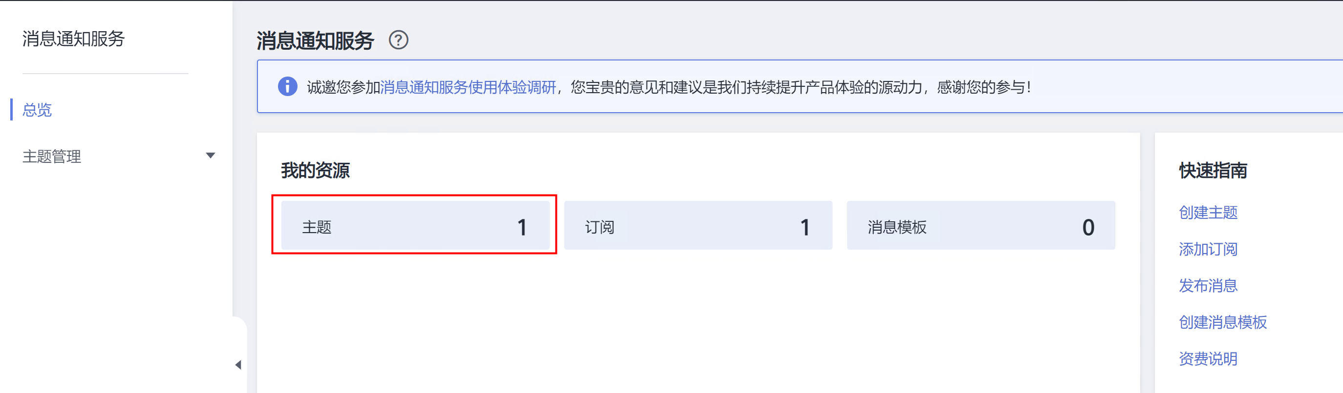 初次使用没有主题,需要先点击上图中的“主题订阅”进入“消息通知服务”页面申请主题,并确认主题。