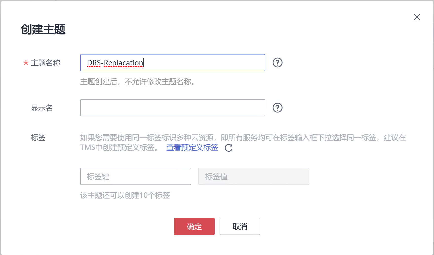 填写主题名称创建主题。
