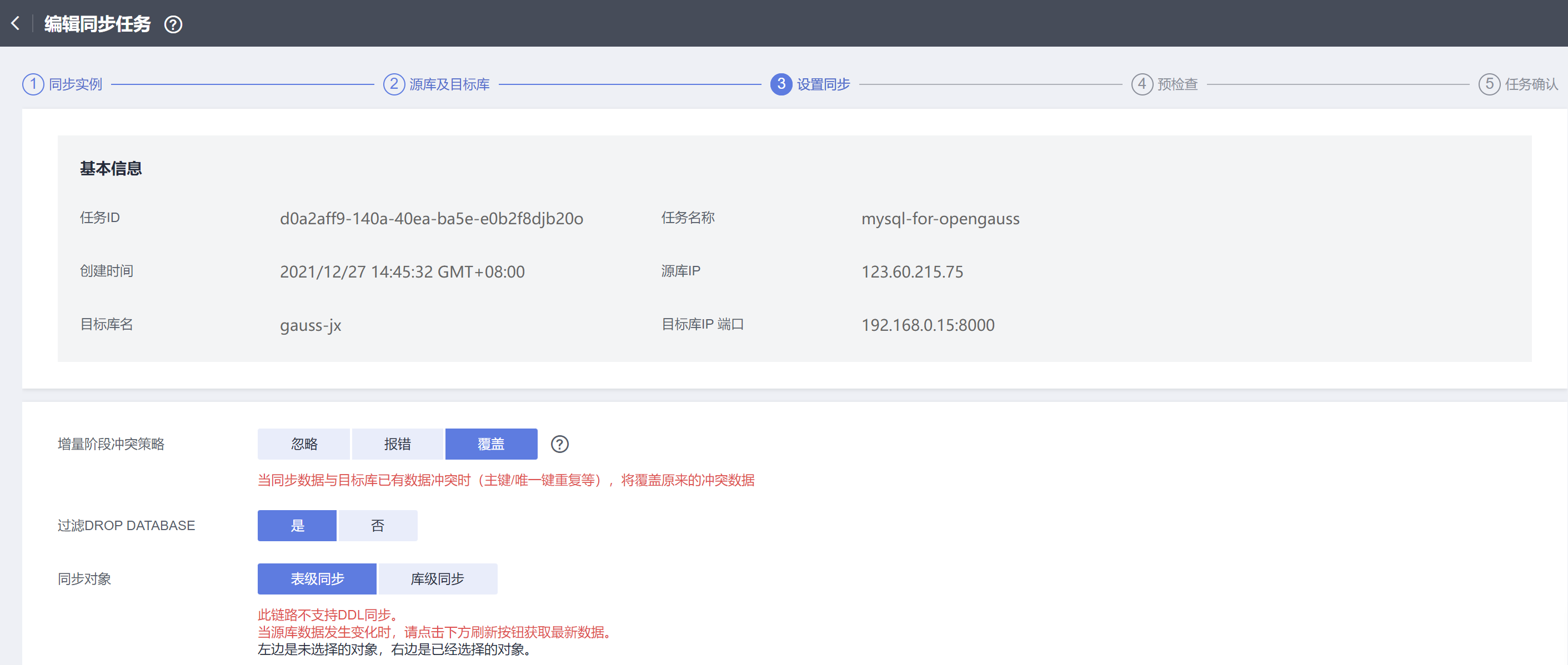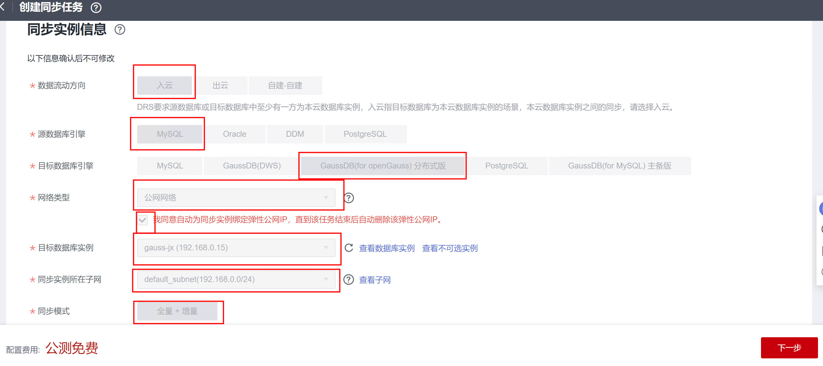 DRS数据复制体验第三关-MySQL与GaussDB(for openGauss)间的DRS同步任务创建。