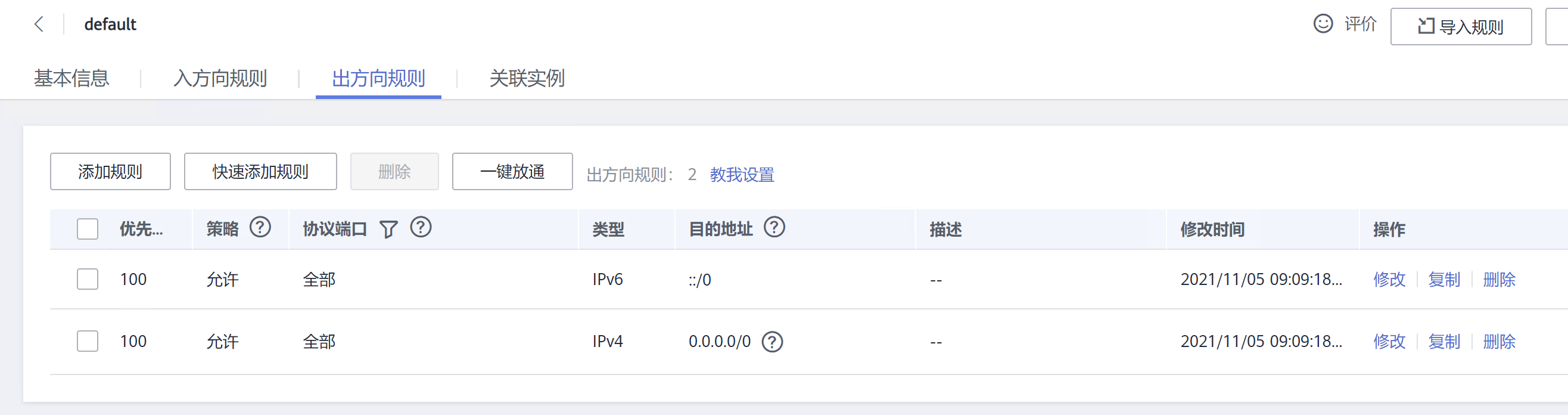 默认的出方向规则已能触达DRS,故无需另外增加配置。