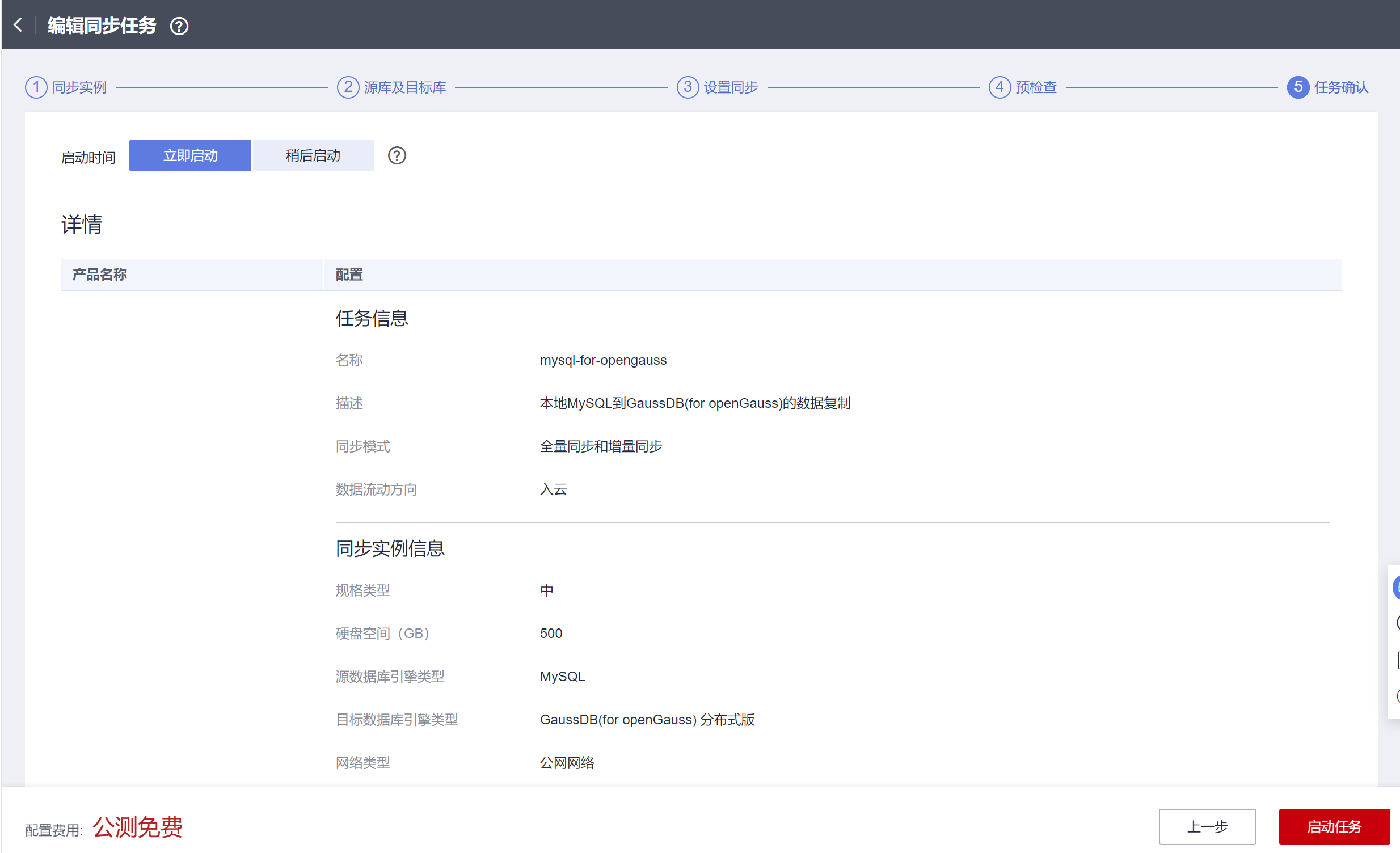 预检查通过后,单击下一步,进入最后一步“任务确认”