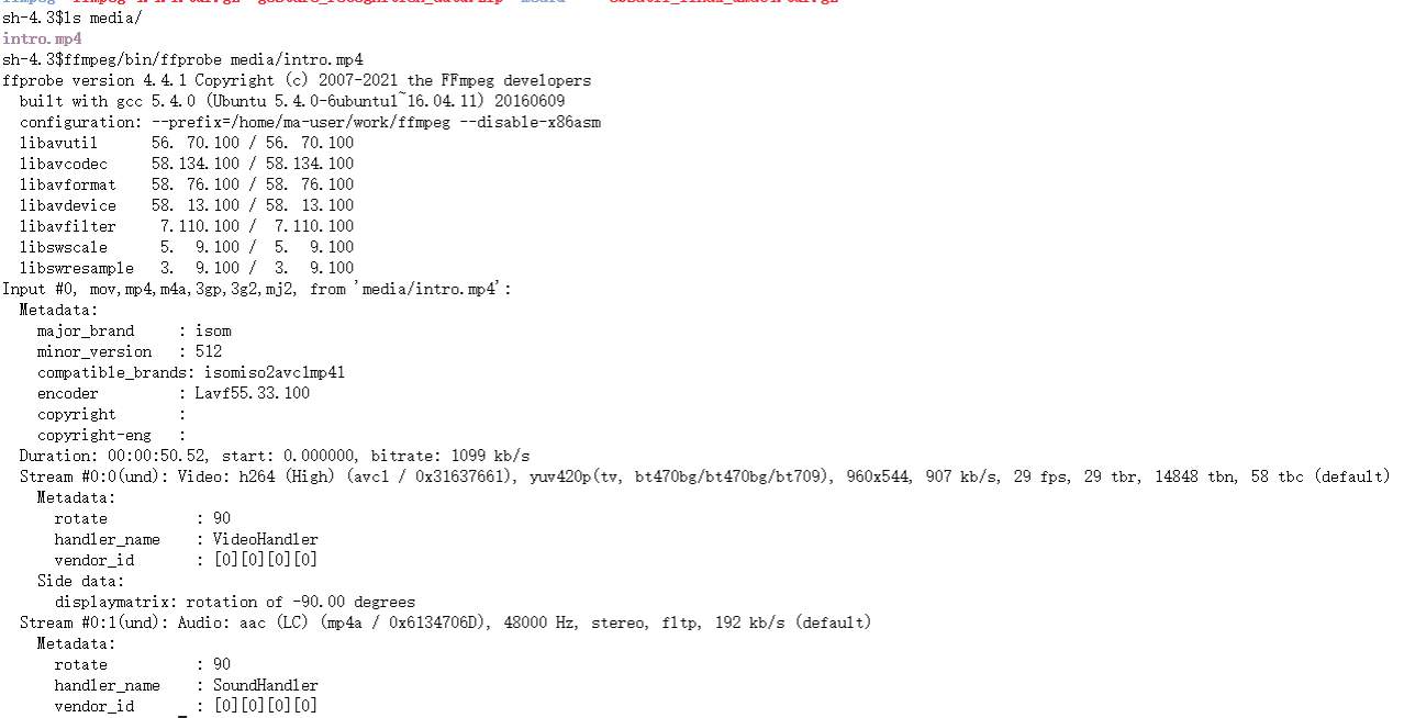 好了就好,bin下有ffmpeg和ffprobe这二个工具,其中ffprobe可以查看多媒体文件的元数据,
